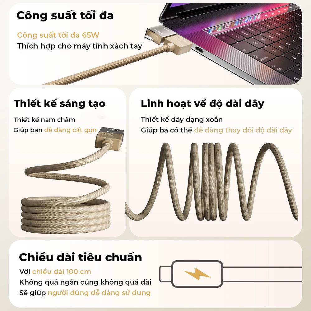 - Trong những năm gần đây, dây sạc từ tính đang dần trở thành lựa chọn phổ biến cho người dùng công nghệ hiện đại, đặc biệt là những người thường xuyên sử dụng nhiều thiết bị cùng lúc hoặc yêu cầu cao về sự tiện lợi khi sạc. Một trong những sản phẩm nổi bật trên thị trường hiện tại là dây sạc từ tính 65W – loại dây sạc đa năng được thiết kế để phù hợp với hầu hết các thiết bị điện tử, từ điện thoại thông minh, máy tính bảng cho đến laptop.