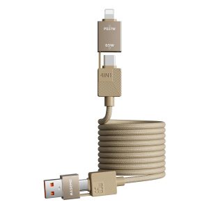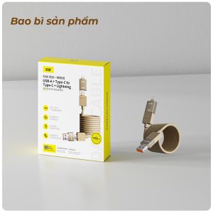 Sản phẩm đi kèm 3 đầu chuyển đổi: Lightning, Type-C và Micro USB. Điều này giúp người dùng có thể linh hoạt sạc cho nhiều thiết bị khác nhau mà không cần mang theo nhiều loại dây riêng biệt. Đặc biệt với những ai sử dụng cả iPhone, tai nghe không dây và pin dự phòng cùng lúc – chỉ cần một dây duy nhất là đủ.