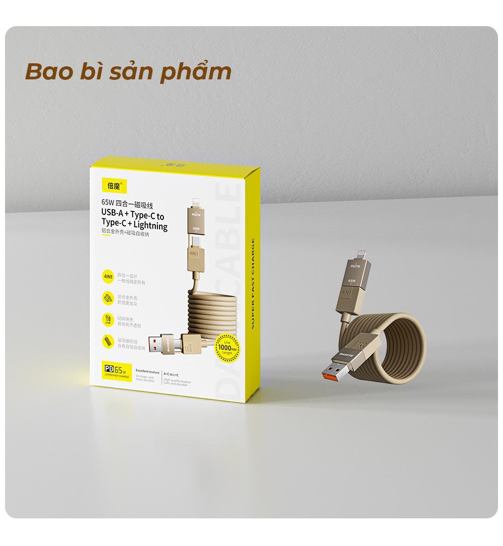 Cáp Sạc BASEMO Từ Tính 4in1 65W là một sản phẩm lý tưởng cho những ai cần sạc nhanh và hiệu quả.