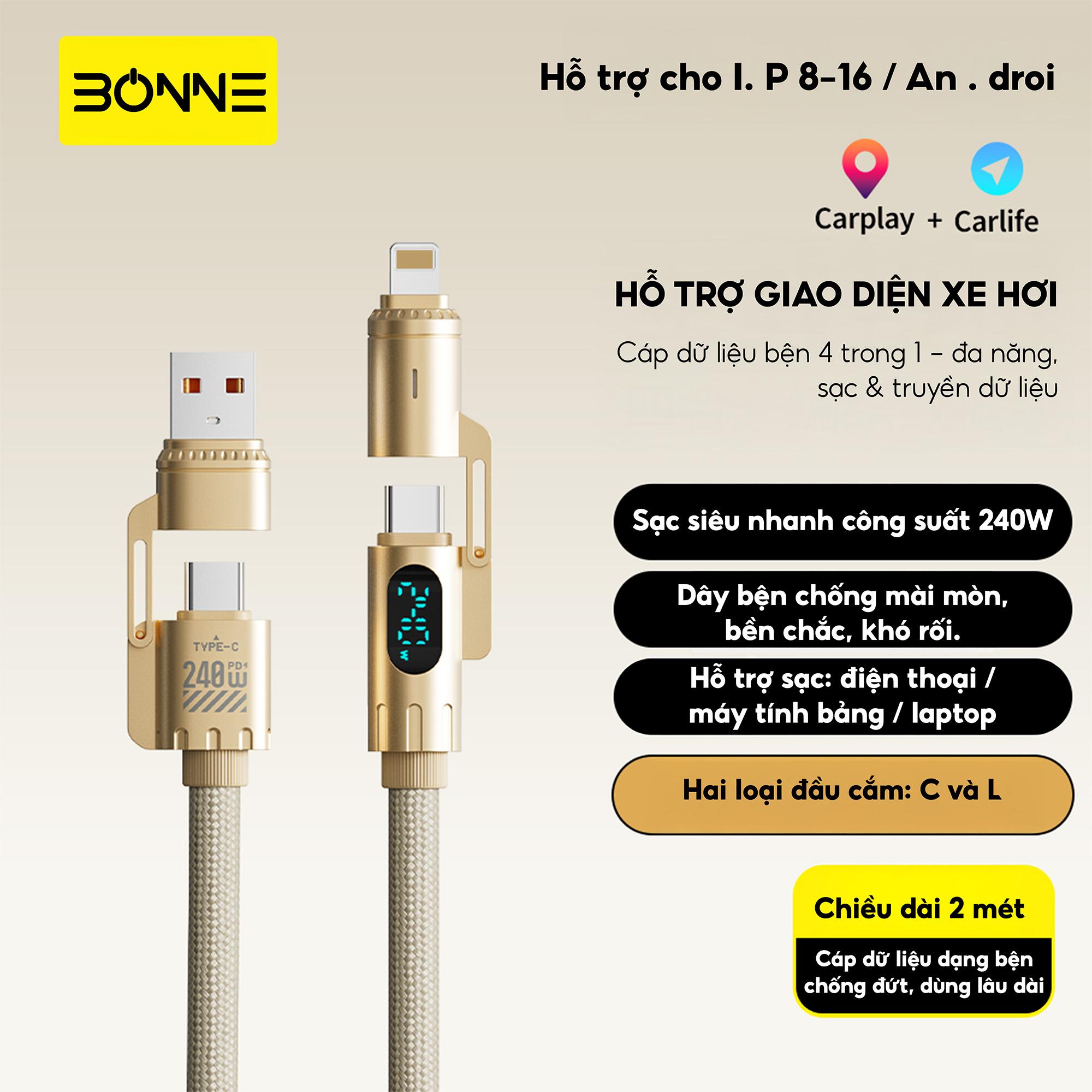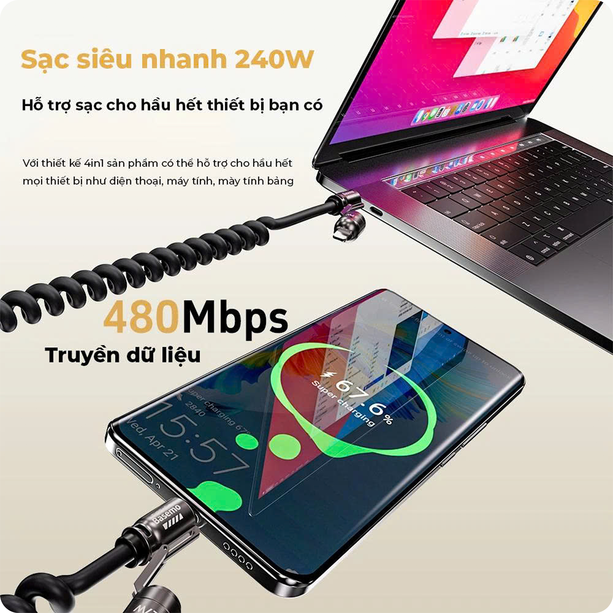 - Bạn đang tìm kiếm một giải pháp sạc đa năng, tốc độ cao và tương thích với mọi thiết bị của mình? Cáp sạc 4 trong 1 BC30 240W chính là lựa chọn hoàn hảo dành cho bạn. Với thiết kế tích hợp 4 đầu sạc phổ biến nhất hiện nay, sản phẩm này có thể đáp ứng nhu cầu sạc pin cho điện thoại, máy tính bảng, laptop và nhiều thiết bị khác.?