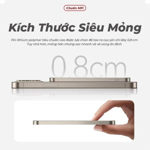 - BP25 sở hữu độ dày chỉ 0,8 cm, cho phép bạn dễ dàng mang theo trong túi xách hoặc túi quần mà không cảm thấy cồng kềnh. Thiết kế tinh tế không chỉ đẹp mắt mà còn giúp bạn sạc điện thoại một cách thuận tiện trong mọi tình huống.